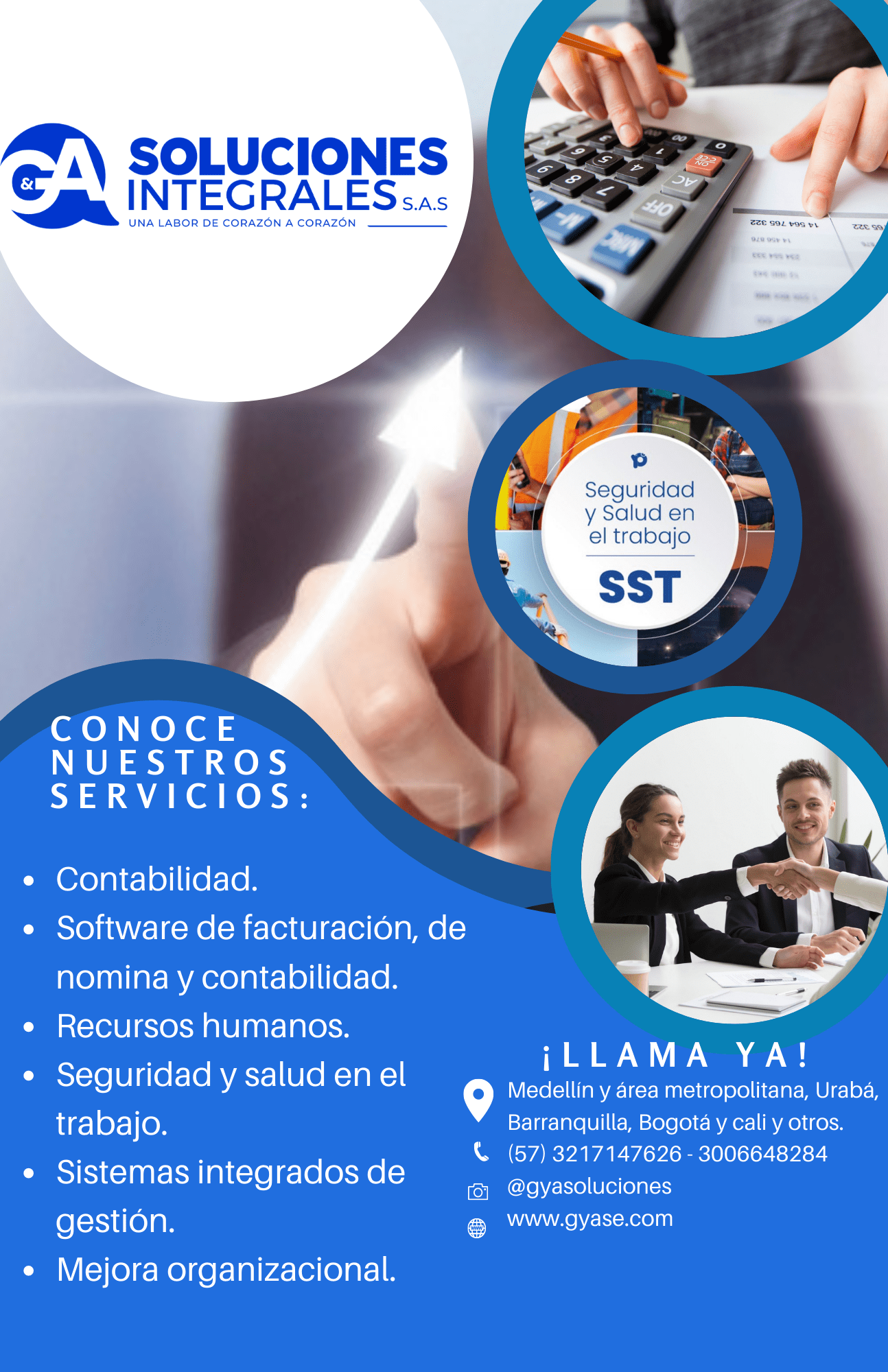 GYA Soluciones Integrales SAS es tu socio confiable para abordar diversas necesidades empresariales. Ofrecemos una amplia gama de servicios que incluyen contabilidad, administración y seguridad y salud en el trabajo. Nuestra empresa se dedica a simplificar y mejorar tus operaciones comerciales, permitiéndote concentrarte en tus fortalezas.